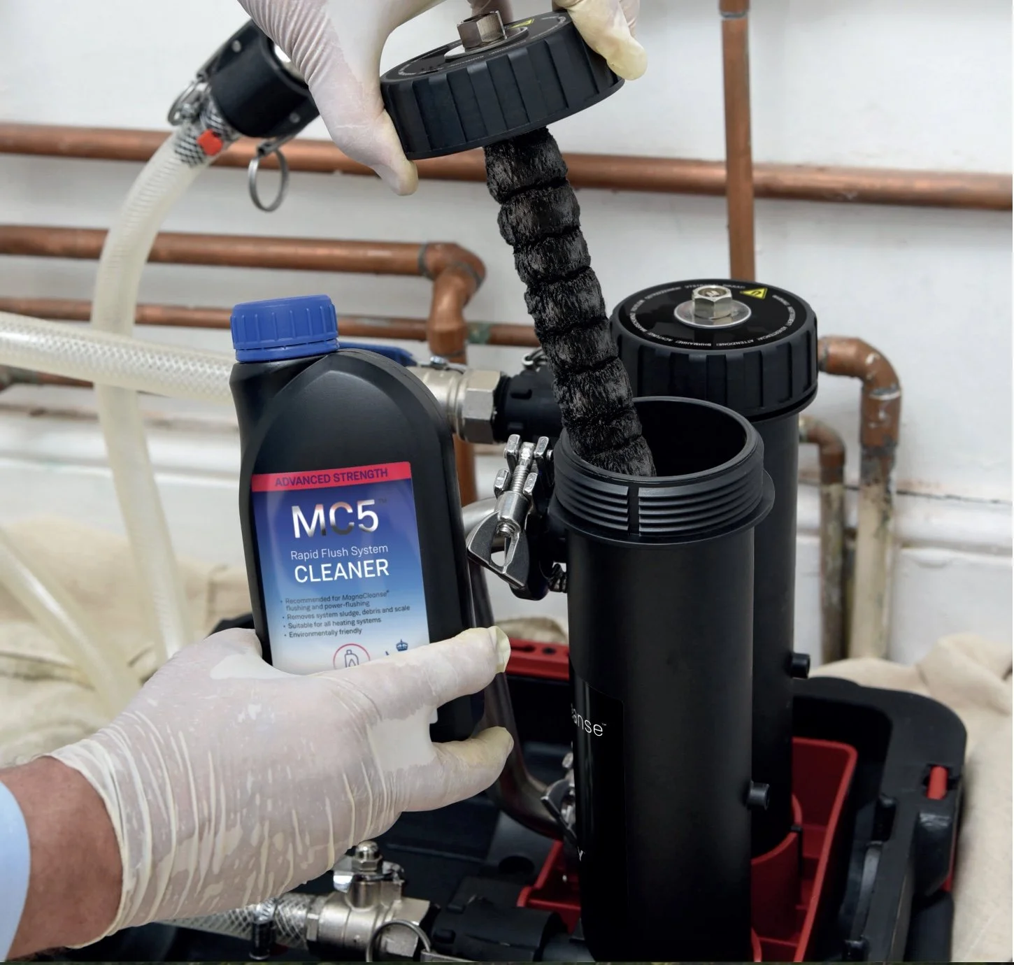 A magnetic filter is a device installed in your system to trap future sludge and debris. Power flushing is a one-time deep cleaning process to remove existing buildup. They work well together.